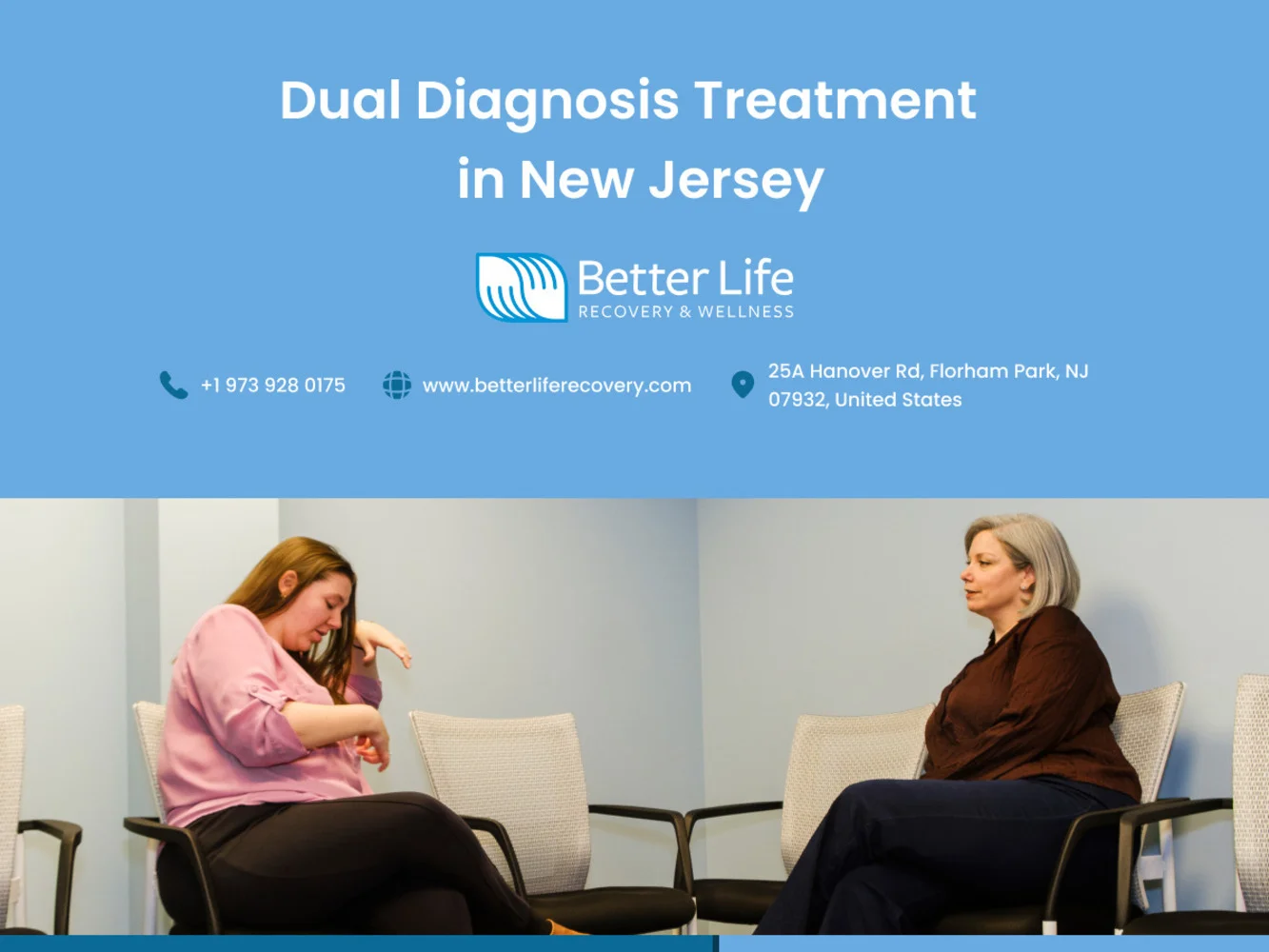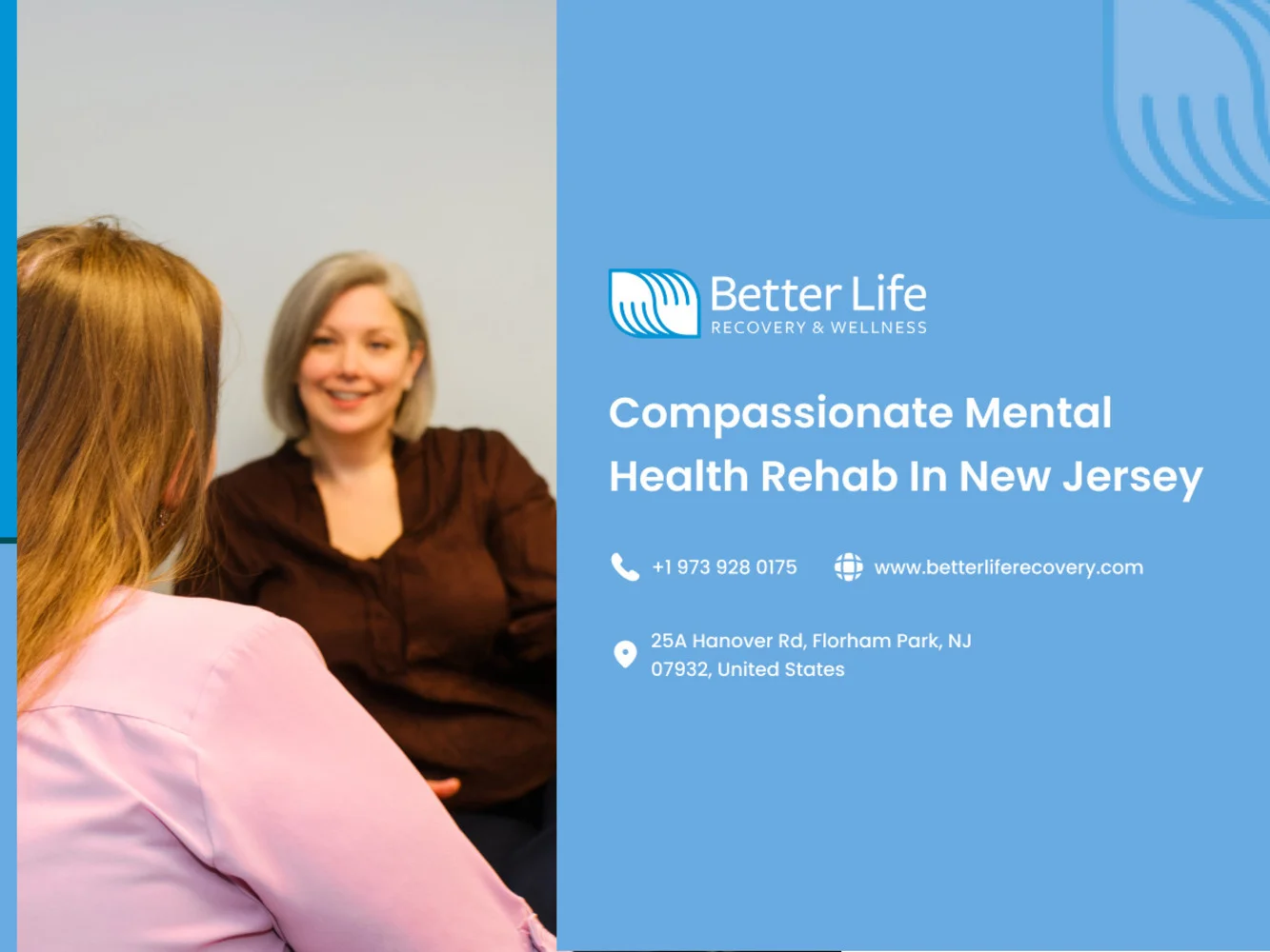 Better Life Recovery and Wellness is a comprehensive drug and alcohol rehab center in Northern New Jersey, providing integrated treatment for substance use and co-occurring mental health disorders.